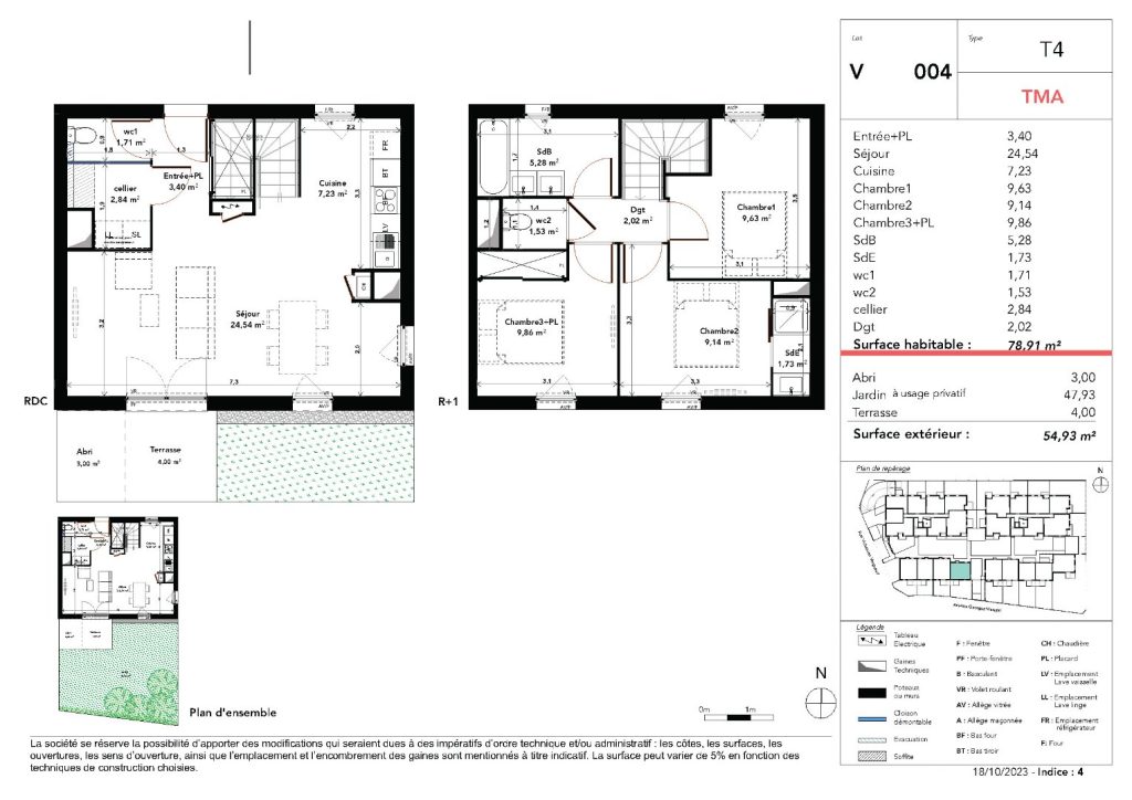 [ACCESSION] Offrez-vous un cadre de vie exceptionnel avec cette villa T4 Duplex de 54,93 m², située dans une résidence neuve à l'architecture moderne à Blanquefort, aux portes de Bordeaux. Lumineuse et spacieuse, cette villa d'exception vous séduira par son vaste séjour de 24,54 m² avec cuisine équipée. À l'étage, vous profiterez de trois chambres confortables, dont une avec salle d'eau privative. Vous disposerez également d'une salle de bains et d'un WC séparé. Au rez-de-chaussée, un cellier et un second WC complètent l'agencement. Vous apprécierez particulièrement le grand jardin avec terrasse de 54,93 m², idéal pour profiter des beaux jours. Cette résidence sécurisée propose des prestations de qualité, avec un accès piéton facilité, un stationnement en sous-sol et un local vélos pour plus de confort. Les villas bénéficient également d'abris jardin privatifs, offrant un espace de verdure intime. Située au cœur de Blanquefort, cette résidence vous permet de profiter pleinement des atouts de cette ville dynamique et bien desservie. À proximité immédiate, vous trouverez supermarchés, écoles, collèges, lycées et équipements sportifs, ainsi que le parc de Fongravey et le bois de Tamarix pour vos moments de détente. Bordeaux est facilement accessible grâce à la ligne C du tramway, aux cinq lignes de bus et à la ligne ferroviaire du Médoc. Ne manquez pas cette opportunité unique de vivre dans un cadre privilégié ! Contactez-nous dès maintenant pour en savoir plus et découvrir votre futur chez-vous. Surface CARREZ : 78.91 m²