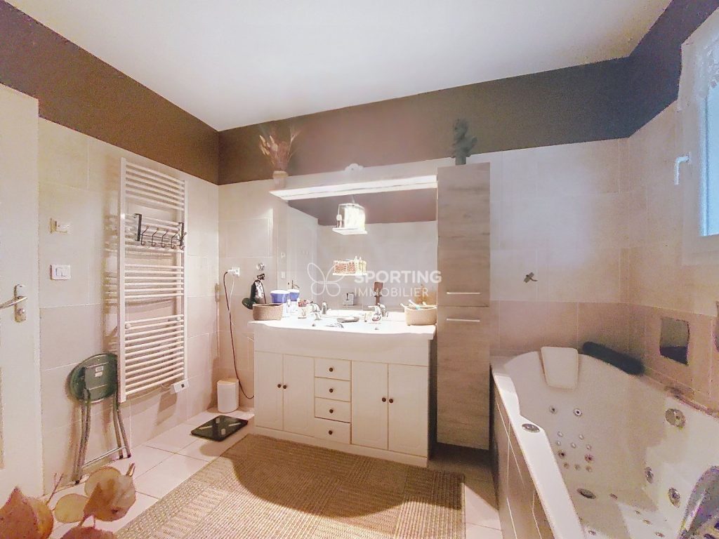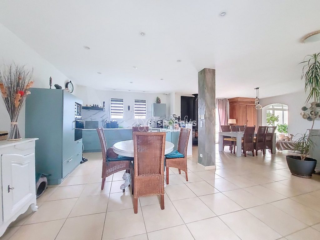 Nichée dans un environnement calme et verdoyant, cette maison familiale offre un cadre de vie privilégié, au cur d'un parc arboré d'environ 3 000 m², entièrement clôturé et bénéficiant d'une belle vue dégagée. Dès l'arrivée, une allée soignée mène à la maison et à ses deux garages, dans une atmosphère paisible et accueillante. Principalement habitable de plain-pied, la maison propose des espaces de vie lumineux et confortables. La cuisine récente, aménagée et équipée, s'ouvre sur la salle à manger, tandis que le salon donne directement accès à la terrasse et à la piscine protégée par un dôme, invitant à profiter pleinement des beaux jours comme des saisons plus fraîches. Le rez-de-chaussée accueille trois chambres et une salle de bains, offrant une organisation idéale pour la vie de famille. Une quatrième chambre à l'étage permet d'imaginer un espace supplémentaire selon vos besoins. Pensée pour le confort au quotidien, la maison bénéficie d'un excellent niveau de performance énergétique et d'un DPE favorable grâce au chauffage au sol, à la climatisation réversible, aux panneaux solaires et au poêle à bois. Une maison chaleureuse et agréable à vivre, où l'on se sent bien dès les premiers instants, dans un cadre naturel propice au calme et à la détente.