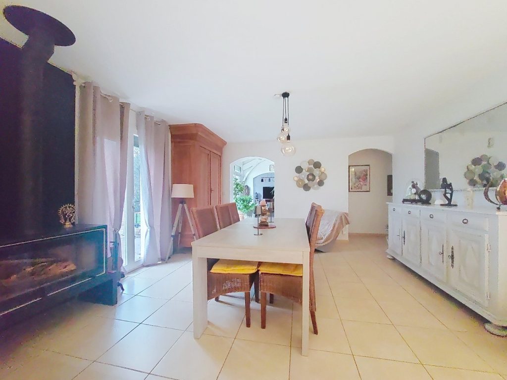 Nichée dans un environnement calme et verdoyant, cette maison familiale offre un cadre de vie privilégié, au cur d'un parc arboré d'environ 3 000 m², entièrement clôturé et bénéficiant d'une belle vue dégagée. Dès l'arrivée, une allée soignée mène à la maison et à ses deux garages, dans une atmosphère paisible et accueillante. Principalement habitable de plain-pied, la maison propose des espaces de vie lumineux et confortables. La cuisine récente, aménagée et équipée, s'ouvre sur la salle à manger, tandis que le salon donne directement accès à la terrasse et à la piscine protégée par un dôme, invitant à profiter pleinement des beaux jours comme des saisons plus fraîches. Le rez-de-chaussée accueille trois chambres et une salle de bains, offrant une organisation idéale pour la vie de famille. Une quatrième chambre à l'étage permet d'imaginer un espace supplémentaire selon vos besoins. Pensée pour le confort au quotidien, la maison bénéficie d'un excellent niveau de performance énergétique et d'un DPE favorable grâce au chauffage au sol, à la climatisation réversible, aux panneaux solaires et au poêle à bois. Une maison chaleureuse et agréable à vivre, où l'on se sent bien dès les premiers instants, dans un cadre naturel propice au calme et à la détente.
