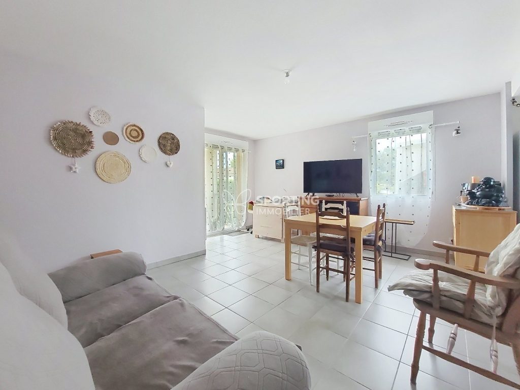 SPORTING IMMOBILIER vous propose à la vente ce superbe appartement T3, situé en rez-de-chaussée d'une résidence récente, calme et verdoyante. Ce bien lumineux bénéficie d'une triple exposition, offrant une belle clarté tout au long de la journée. Il se compose d'une entrée avec placard, d'un spacieux séjour avec cuisine ouverte donnant sur une terrasse idéalement orientée, de deux chambres avec rangements intégrés, d'une salle de bains et de WC séparés. L'appartement est en état irréprochable, aucun travaux à prévoir. Deux places de stationnement complètent ce bien. Vendu libre de toute occupation. À visiter sans tarder !