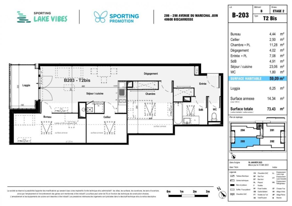 À louer à Biscarrosse, dans une résidence neuve et sécurisée, ce bel appartement T2 Bis de 59,09 m², situé au 2eme étage, vous séduira par son agencement optimisé et son environnement paisible à deux pas du centre-ville.