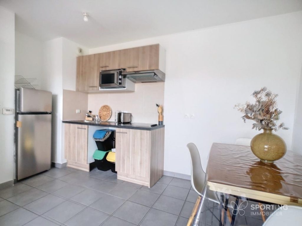 Sporting Immobilier vous propose à la location ce joli T3 entièrement meublé avec goût. Le logement se compose d’une entrée avec grand placard, d’une cuisine ouverte sur un séjour lumineux, balcon sans vis à vis, deux chambres dont une avec un grand placard, salle de bain et wc séparé.
