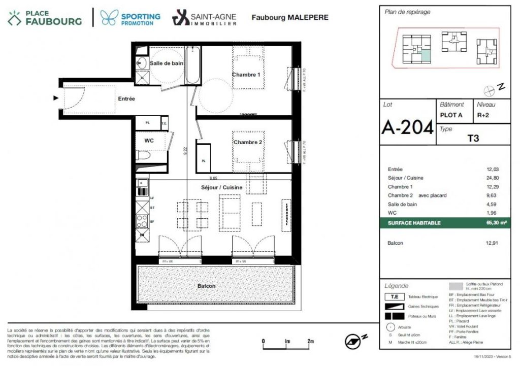 Sporting Immobilier vous propose cet appartement 3 pièces de 65.30m² situé au 2ème étage d’une résidence neuve, quartier Malepère, à proximité de la future ligne C du métro, des lignes de bus (L9, 78, 80), du périphérique et de nombreux commerces.