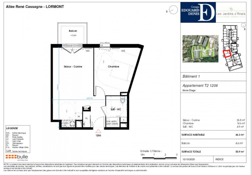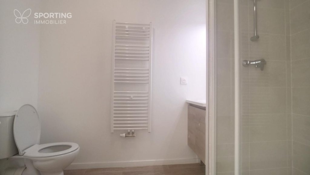 Dans une résidence neuve, venez visiter cet appartement de type 2 de plus de 46 m² au 3eme étage offrant une cuisine équipée (plaque vitrocéramique, hotte, frigo top, meubles de rangements) ouverte sur un séjour avec accès au balcon, une chambre, une salle d’eau avec un WC. Le chauffage est collectif réseau urbain.