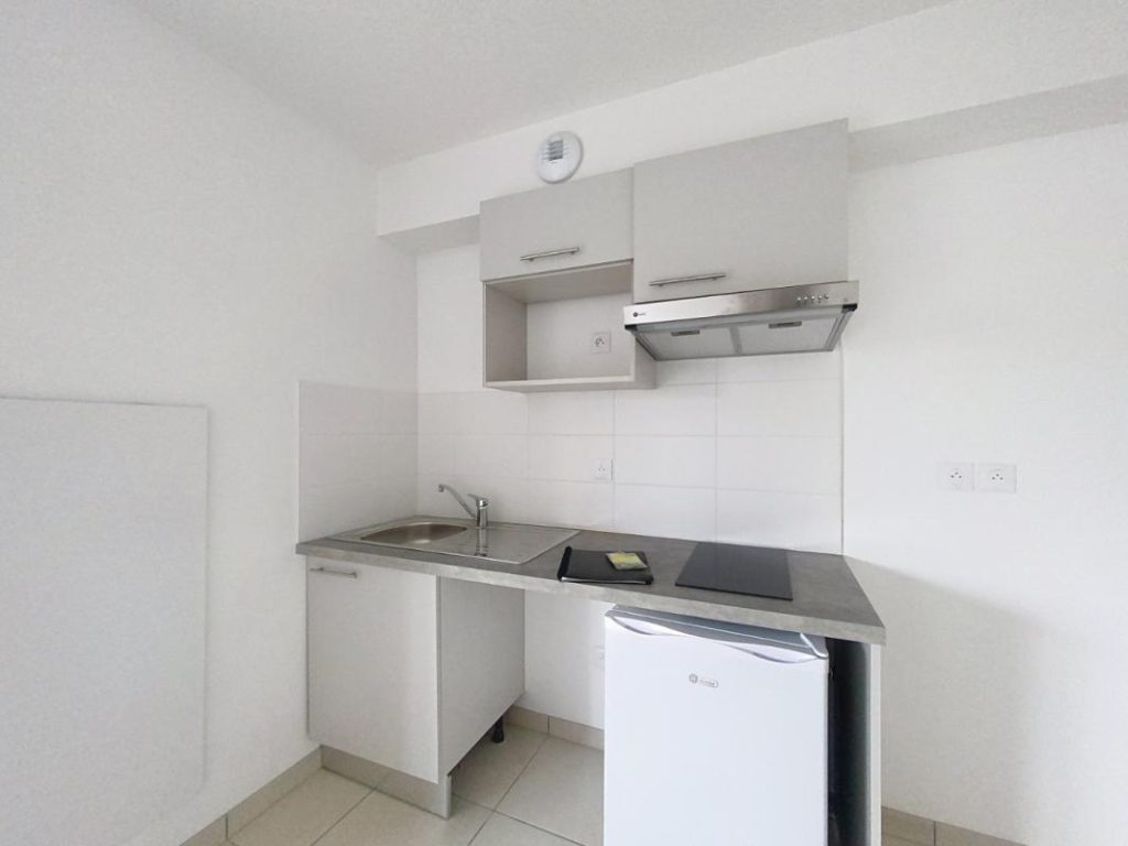 Il se compose d’une entrée avec placard, d’un séjour lumineux donnant accès au jardinet, une cuisine ouverte et équipée (hotte, plaque de cuisson, frigo top), une grande chambre avec sa salle d’eau attenante, un wc séparé et un cellier.