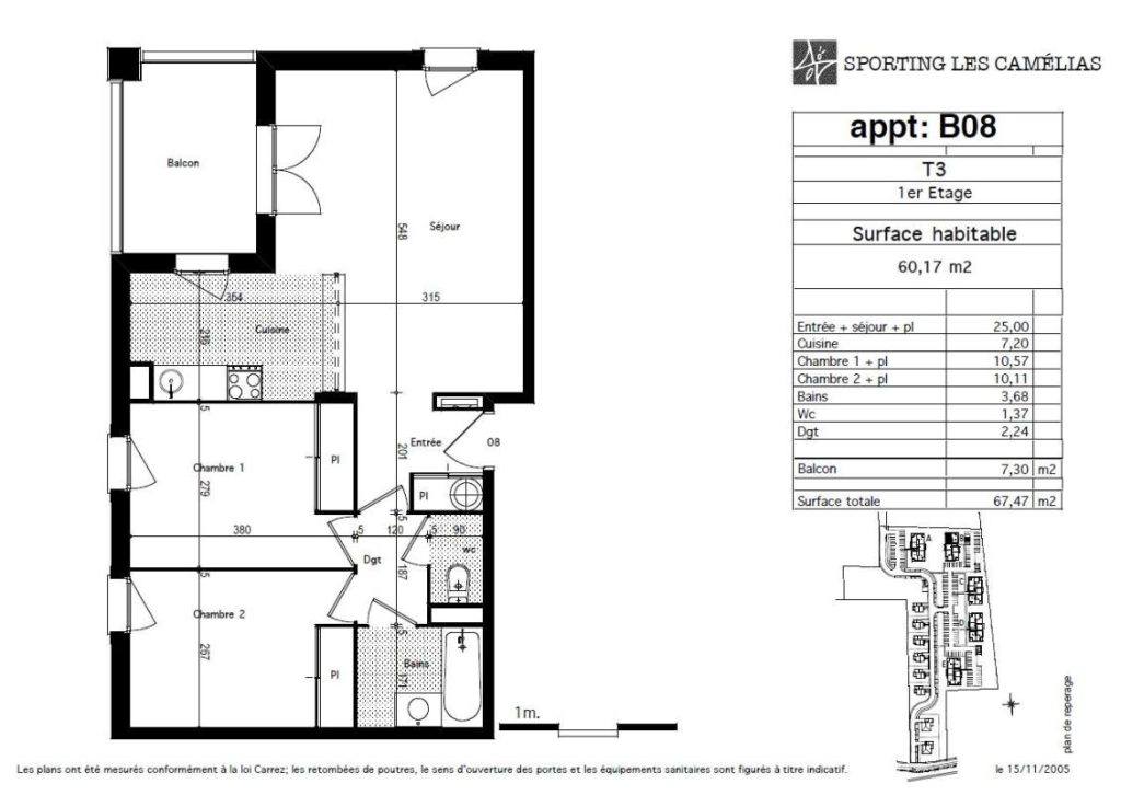 Dans une résidence au calme avec piscine et salle de sport, venez visiter cet appartement de type T3 de plus de 60m² situé au 1er étage composé d’une entrée avec placard, d’un agréable séjour ouvrant sur un balcon de plus de 7m², d’une belle cuisine ouverte équipée (plaques de cuisson deux feux, une hotte aspirante, meubles de rangement et un bar), de deux chambres avec placard et d’une salle de bains et WC séparé. Le chauffage est individuel et électrique.