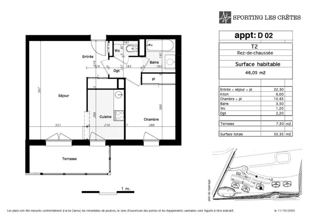 Dans cette résidence au calme avec salle de sport, venez visiter cet appartement de type 2 de 46,05m² situé au rdc, offrant une entrée avec placard, un salon ouvrant sur une terrasse, une cuisine ouverte équipée (plaque chauffantes, hotte aspirante, meubles de rangement, une tablette bar), d’une chambre avec placard et d’une salle de bains. Le chauffage est individuel et électrique. Deux places de parking complètent la visite.