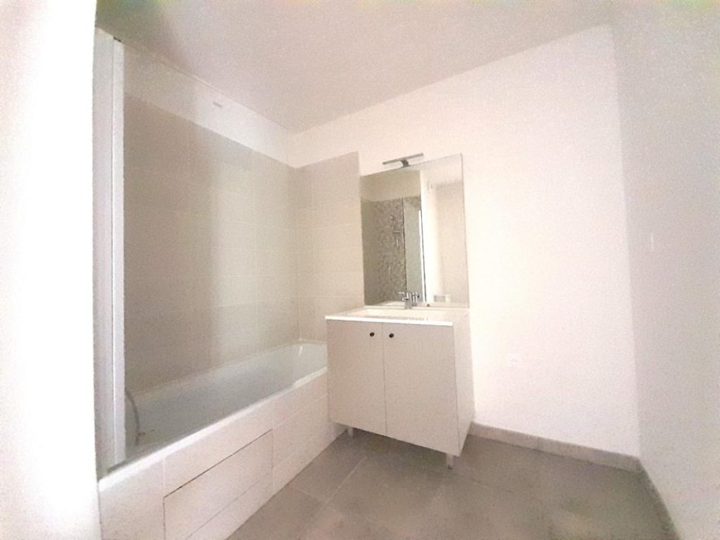 L’appartement se compose d’une entrée avec placard, d’un séjour donnant accès à l’extérieur, d’cuisine ouverte et équipée (hotte, plaque de cuisson), d’une grande chambre avec placard et d’une salle de bain avec wc.