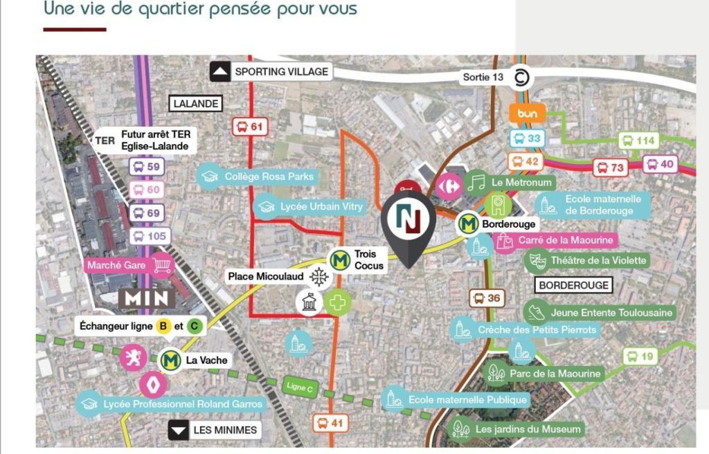 Les Plus, petite résidence de 30 logements sécurisée avec vigik et portail automatique, cœur ilot paysager, local deux roues. Le résidence est située à proximité de la sortie du métro Borderouge avec ses commerces de proximités et les jardins du Muséum.