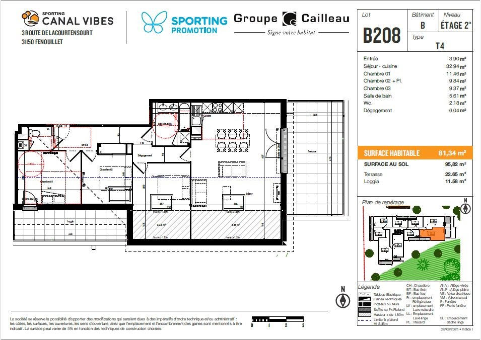 Il offre une cuisine équipée (meubles de rangement, plaque vitrocéramique, hotte) et ouverte sur un grand séjour lumineux avec accès sur une grande terrasse de 22.65m² sans vis à vis, de trois chambres dont une avec placard et une autre avec accès sur une loggia de 11.58m², une salle de bain et un WC séparé.