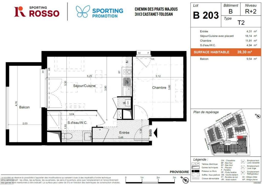 Le logement se compose d’une entrée avec placard, d’une cuisine ouverte équipée (plaque de cuisson, hotte, meubles de rangement), d’une pièce vie lumineux avec balcon de 9,54 m² sans vis-à-vis, d’une chambre, d’une salle d’eau avec wc. Le chauffage est individuel au gaz.