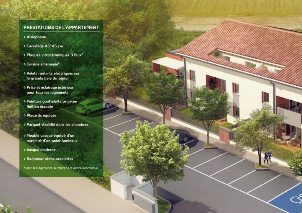 Les plus : résidence aux dernières normes thermiques (RT2012), système d’accès Vigik pour ouverture des portails piétons, volets roulants électrique pour le séjour. Le logement se situe à deux pas du centre de Labastide Saint Sernin avec ses commerces, mairie, écoles maternelle et primaire et collège/ lycée entre 7 et 16 min, bus ligne 529 à 10 min à pied, accès autoroute A68/A62 à 12 min.