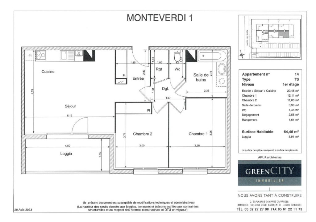 Les plus : Logement neuf dans une petite résidence aux dernières normes d’isolation : économie d’énergie, à proximité des commerces et groupe scolaire, ligne de bus n° 316.