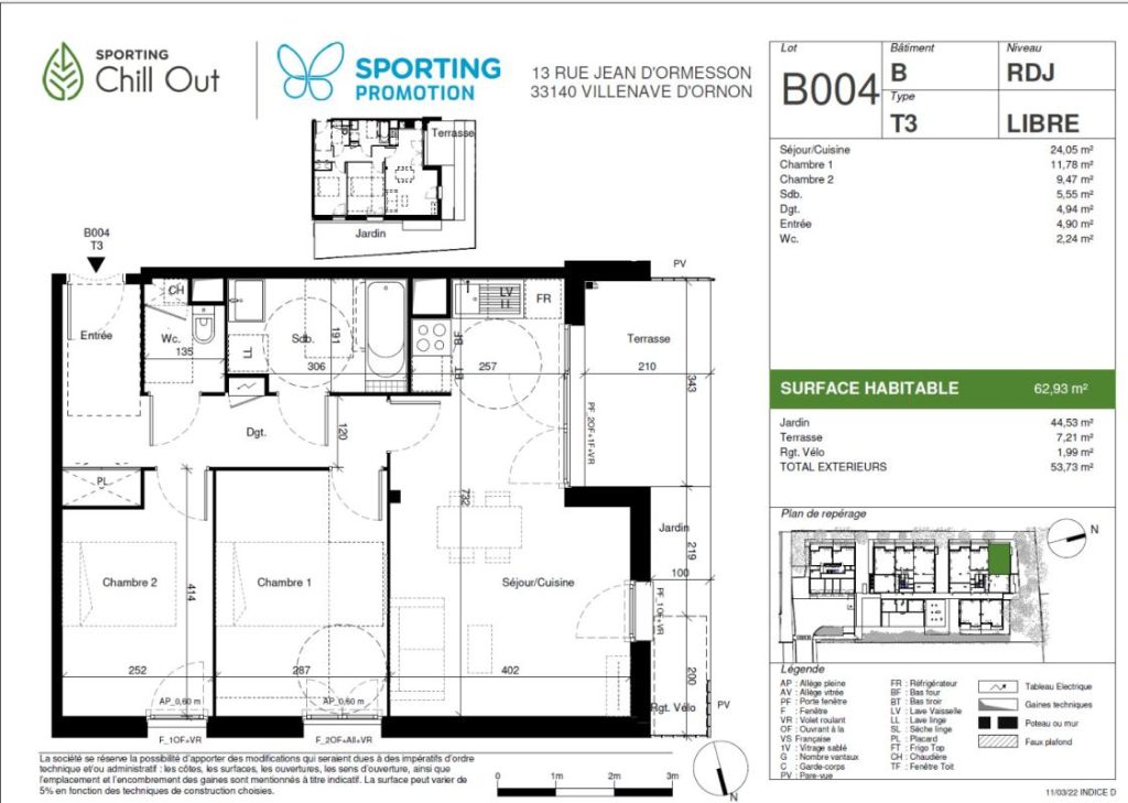 Les Plus : Résidence aux normes RT2012, économie d’énergie. Idéalement situé à 20minutes de Bordeaux, proche commerces et lignes de bus n°89,5 et 15, accès périphérique rapide.