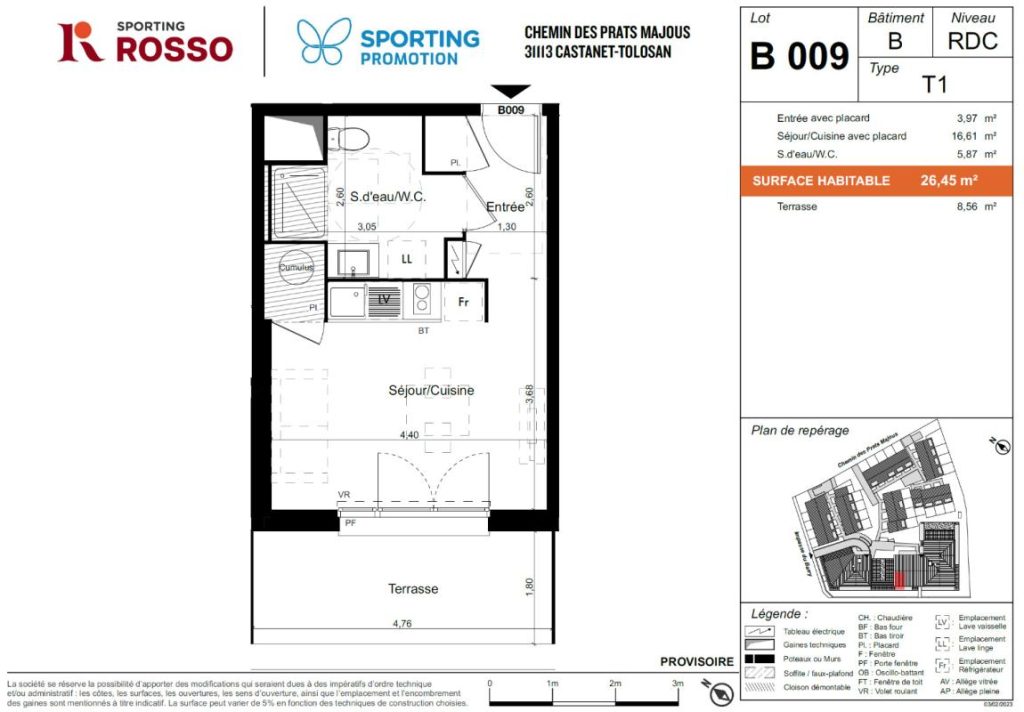 Sporting Immobilier vous propose ce bel appartement T1 NEUF de 26,45 m² en rez-de-chaussée situé dans une résidence au calme, à deux pas des commerces.