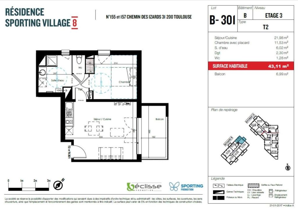 Sporting Immobilier vous propose dans une résidence calme et sécurisée, un appartement de type T2 de plus de 43 m² situé au 3ème étage avec ascenseur.