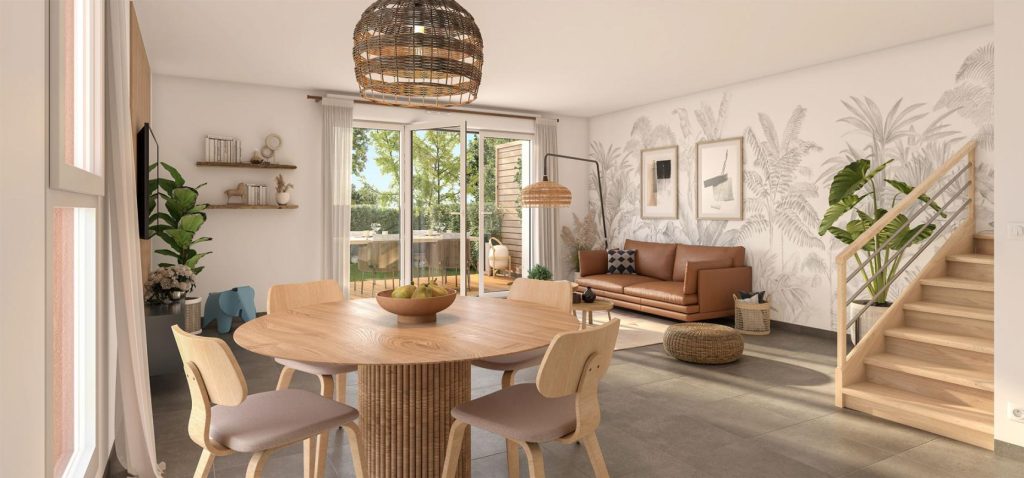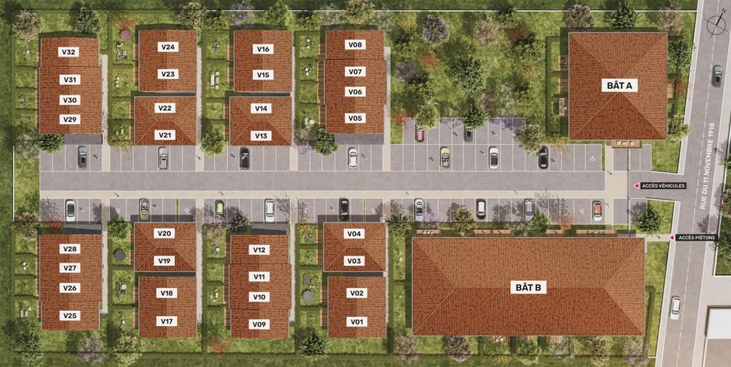 Au sein de deux bâtiments en R+1 et de villas élégantes, la résidence rassemble 55 logements du T2 au T5, bénéficiant de jardins privatifs en rez-de-chaussée, de terrasses en étage et d’un cœur d’îlot végétalisé propice à la détente et aux échanges entre voisins. Chaque espace a été conçu pour maximiser la luminosité naturelle et le confort des habitants, avec des agencements optimisés et des matériaux de qualité.